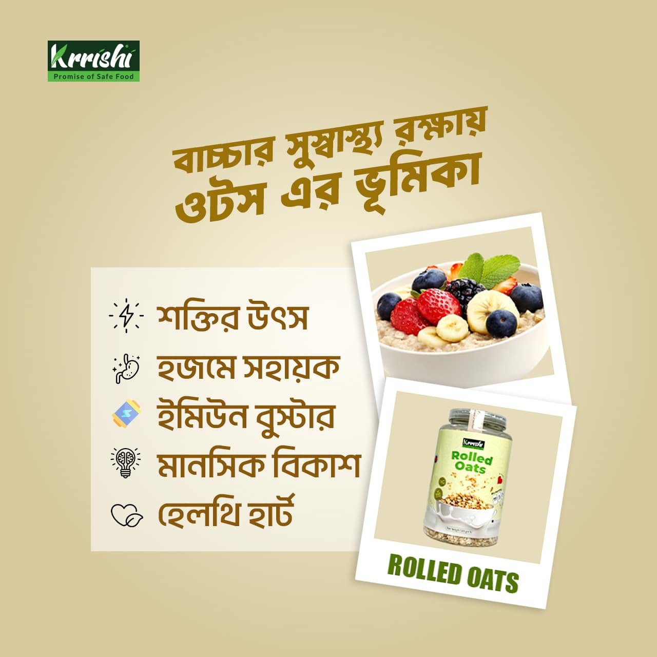 শক্তি ও সুস্বাস্থ্যের প্রাকৃতিক উপায় – এখন প্রতিদিনের নাশতায় কৃষি রোল্ড ওটস!