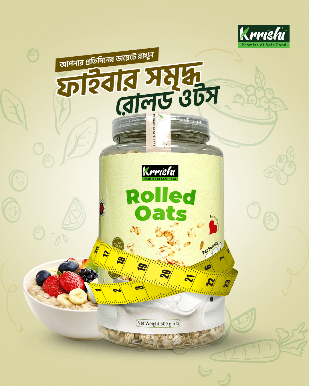 🥣 কৃষি রোল্ড ওটস (Rolled Oats) – 500 গ্রাম